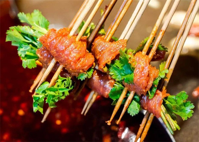 巴蜀美食以辣和麻聞名海內(nèi)外,鍋底的用料決定了串串的味道,走在成都的大街小巷隨處可見矮方桌、小凳子,熱氣騰騰的一鍋紅艷。朋友家人三三兩兩圍著小桌一大把葷的素的往鍋里一扔,擺擺龍門陣、聊聊八卦儼然一幅享受生活的景象
